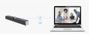 La barre vidéo se connecte facilement via USB à un PC Windows ou Mac et est certifiée pour les principales plateformes de visioconférence, telles que Zoom et Microsoft Teams.