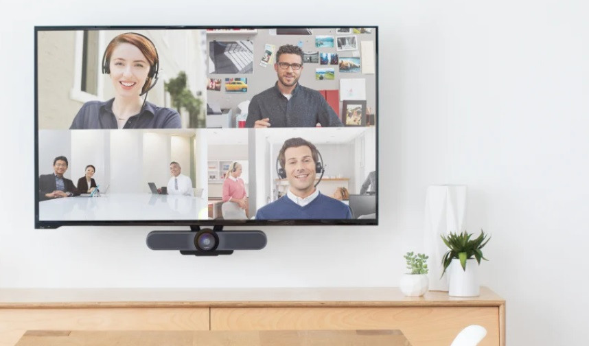La barre de visioconférence Logitech Meet Up est un équipement professionnel idéal pour les petites salles de réunion.