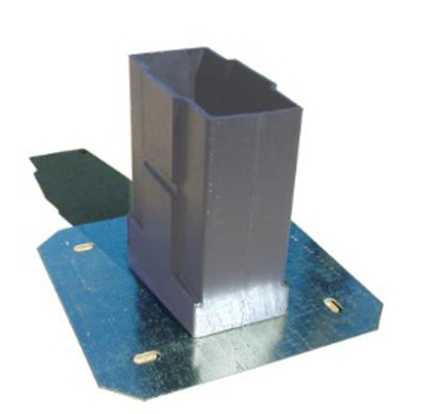 - Sur enrobé : Socle métallisque à visser (Blanc) - Sur sol meuble : Support plastique à noyer