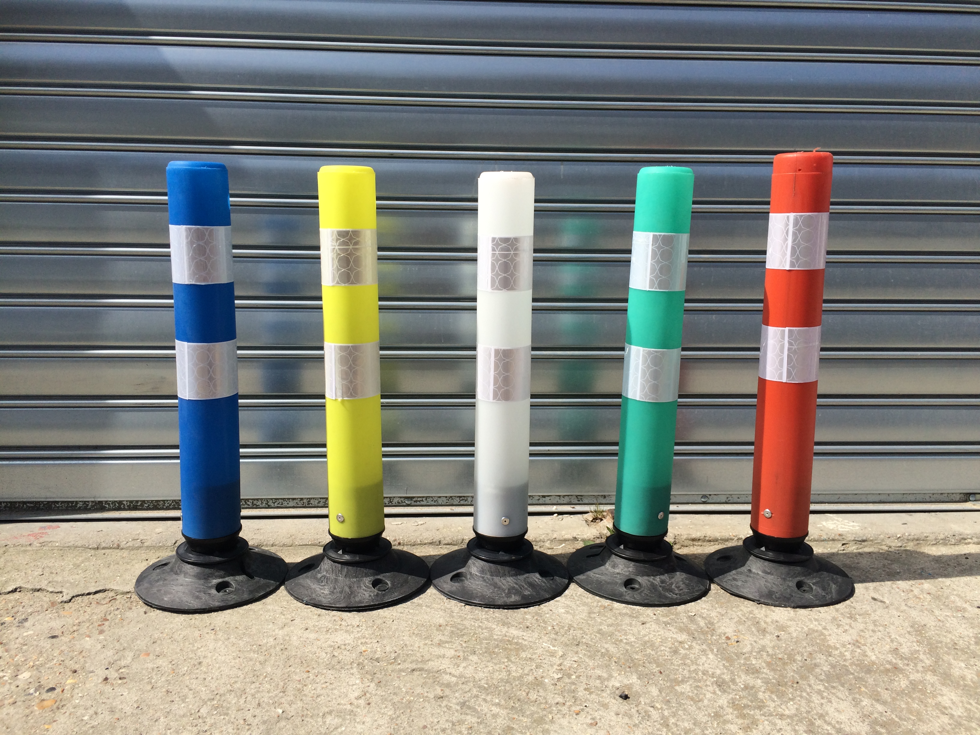 Nous avons besoin de 6 balises de délimitation articulées. ( Deux blanc, deux bleu et deux rouge)