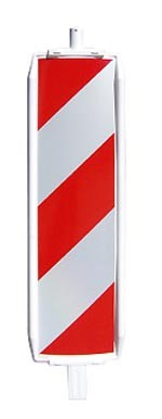 - Balise plastique type 60 W, film classe 1, hachuré, rouge/blanche, embout 60 x 60 mm, double face, côté droit/gauche, réfléchissante.