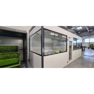 06/04/2023Bonjour, besoin urgent d"une cabine d"atelier modulable, Si possible une de 2m10 par 3m80 maximum, Avec des vitres sur 2 cotés seulement, - Positionné sur la façade tout au long, - Sur le coté gauche avec la porte comme sur la photo ci-dessus, - Le reste en cloison complète, Merci de votre réponse, Bien cordialement