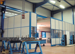 Pour montage de blocs hydrauliques besoin d"un local fermé vitré de 9,4m*4.84m h 4.75m (dim intérieures) avec possibilité d"ouvrir le toit pour passer des pièces grandes dimensions.