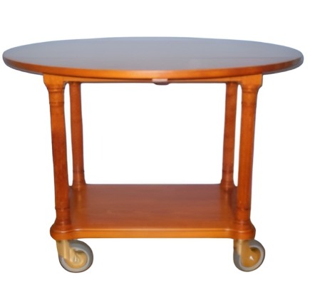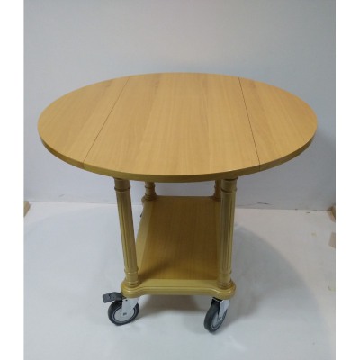 Avec un plateau rond de 100 cm de diamètre, cette table roulante inox ou en hêtre massif (selon la version choisie) offre une large surface pour le service des plats, desserts ou boissons.