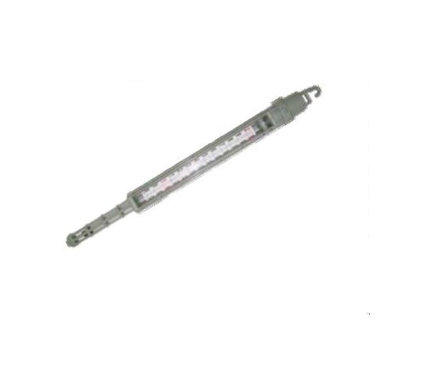 Ce thermomètre de cuisine réalisé en verre est doté d’un affichage de température en liquide rouge moins toxique que le mercure.