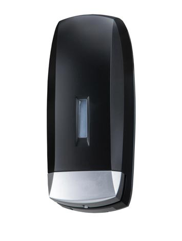 Ce distributeur de savon liquide noir est conçu pour tous les types de savon liquide (sans microbilles).