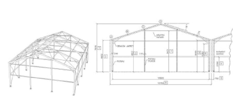 Bâtiment industriel démontable disponible à la vente ou à la location longue durée pour vos besoins de stockage et de production.