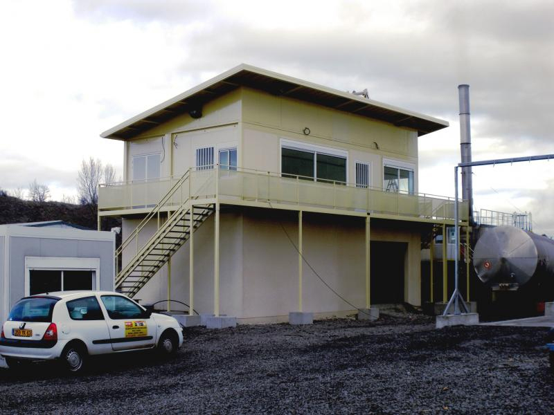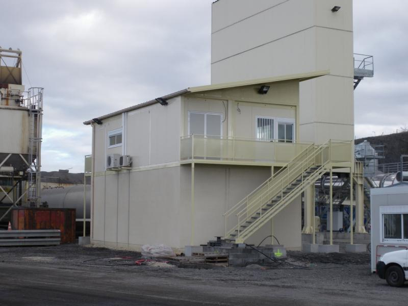 Ce bâtiment modulaire sur mesure est un ensemble de modules à usage de cabine de pilotage de centrale bitume; posée en R+1 avec coursive de distribution.