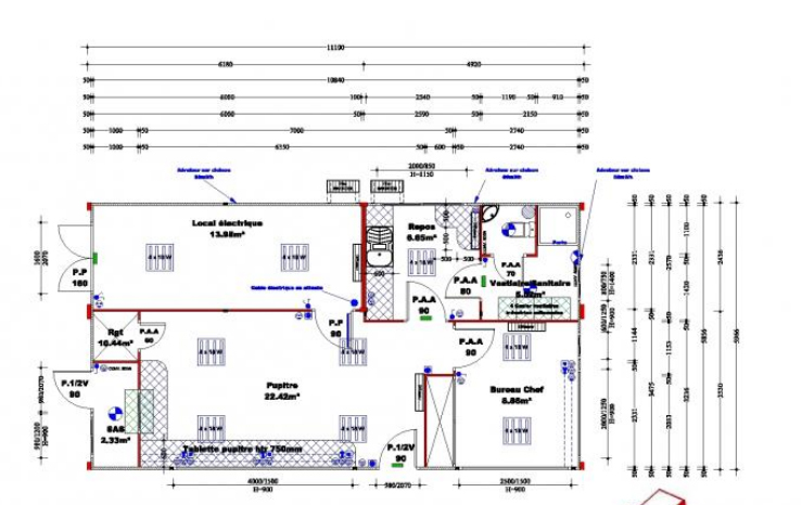 Un devis pour un bâtiment modulaire Bureaux d"environ 190m²: 1 bureau de direction 3 bureaux individuel 3 bureaux 2 postes 1 accueil 1 salle de réunion 1 local technique/archives 1 bloc sanitaires