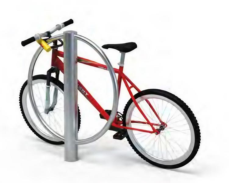Sa hauteur hors sol de 1000 mm offre un point d'attache idéal pour sécuriser le cadre et la roue avant des cycles avec un antivol de type U.