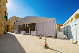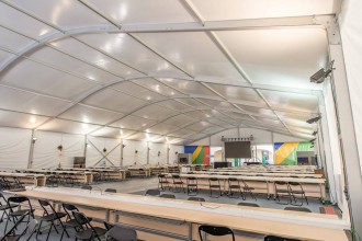 La différence avec les tentes de réception s’opère au niveau de l’esthétique et de la hauteur du chapiteau. A la différence d’un toit à la coupe bi-pente classique, le toit du dôme propose une légère courbe à hauteur du faitage.