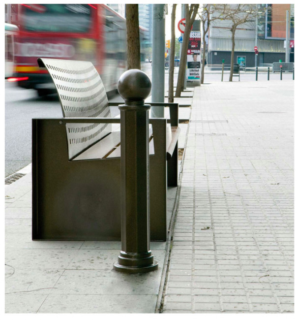 D'une hauteur de 820 mm, ce mobilier urbain est adapté à une fixation par encastrage dans le béton.