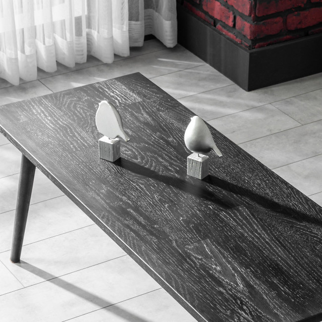 - Tout d'abord, un colorant contenant un pigment noir est appliqué, ce qui met en valeur les grains naturels du chêne.