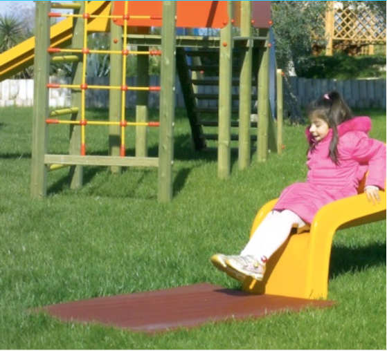Plateforme anti-chocs idéale pour les applications dans des zones soumises au piétinement, en particulier sous les Toboggans, Balançoires, Sièges, etc.