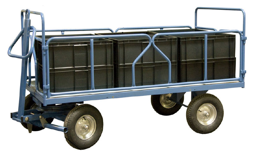 Remorque de construction robuste en profilé d'acier de forte section. La couronne à bille de Ø 400 mm garantie une excellente stabilité avec un rayon de braquage de 2 x 45°.