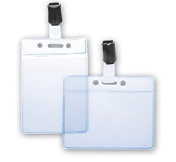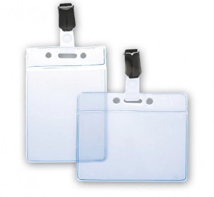 Le porte-badge est disponible en version verticale et horizontale et accepte des cartes de dimensions 86 x 54 mm.