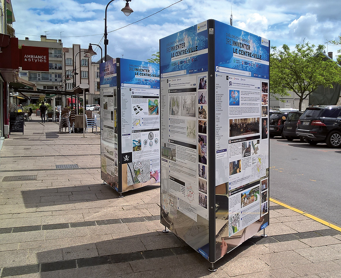nous souhaitons installâtes des totems de communication extérieur. 3 si possible avec impression.