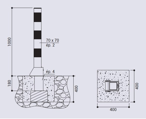 | Réf. TC :371396697 | Potelet rabattable pompier | 70 x 70 | 2 | 1000 | 1180 | 7 | -