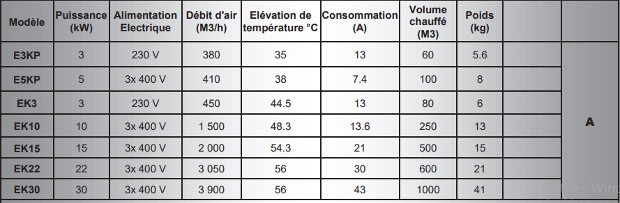 Les chauffages à air pulsé électriques de 5 à 30 kW nécessitent une alimentation triphasée de 400 V, avec ou sans neutre.