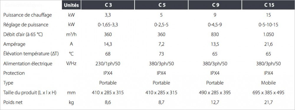 Je recherche un chauffage électrique mobile de 15 kW.