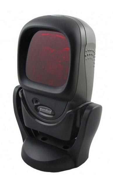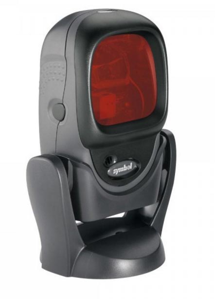 Scanner codes-barres de présentation omnidirectionnel avec lecture à laser multitrame.