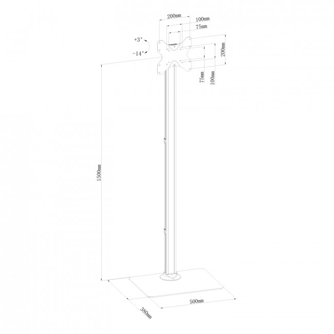 Le support se compose d'une solide base de sol, plate, surmontée d'une fixation pour installer votre écran et l'orienter selon votre besoin (inclinaison +3°/-14°, pivot +/-3°) pour le meilleur confort d'utilisation.