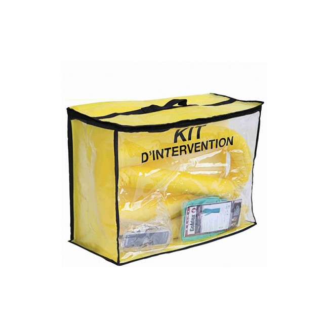 Ce kit anti pollution est utilisé en intervention immédiate pour absorber tout déversement accidentel de produits chimiques.