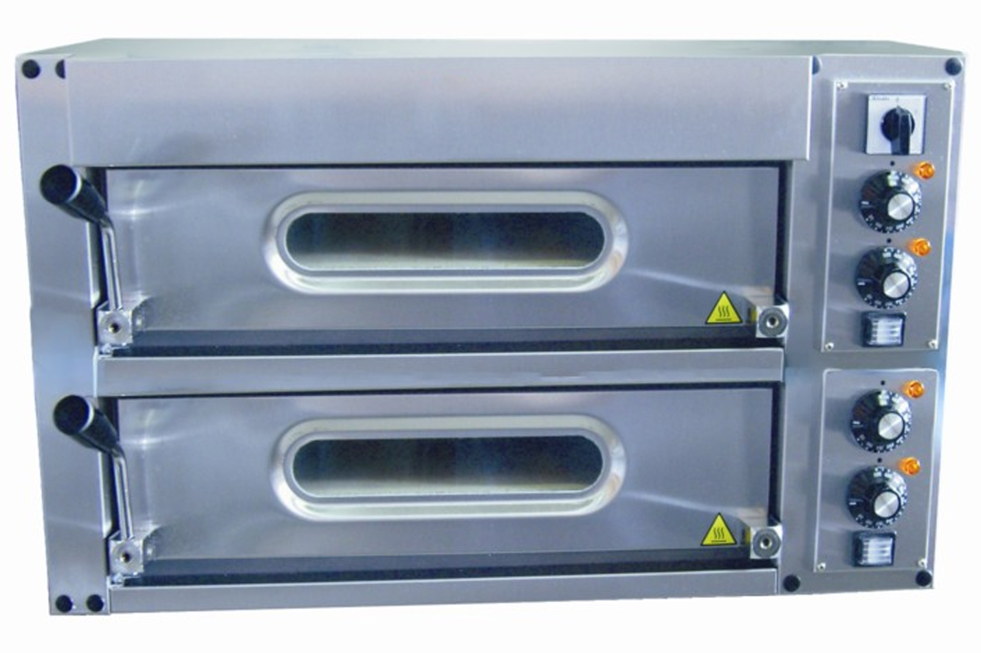 Equipé de 2 chambres de cuisson calorifugées de 500 x 510 mm chacune, qui peut accueillir 4 pizzas de 240 mm de diamètre par chambre (soit 8 pizzas de 240 mm) .