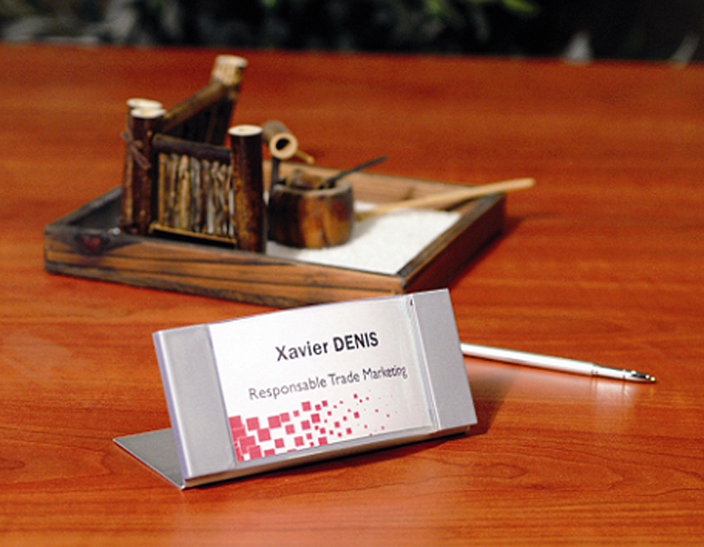 Cette plaque pour carte de visite est conçue pour afficher le nom des interlocuteurs dans les réunions, les conférences, les séminaires