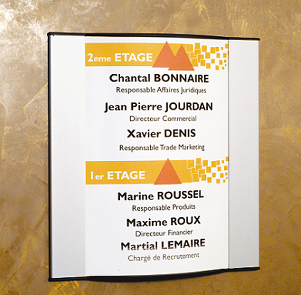 Cette enseigne murale est un support de communication pour bien guider les visiteurs dans l’entreprise.