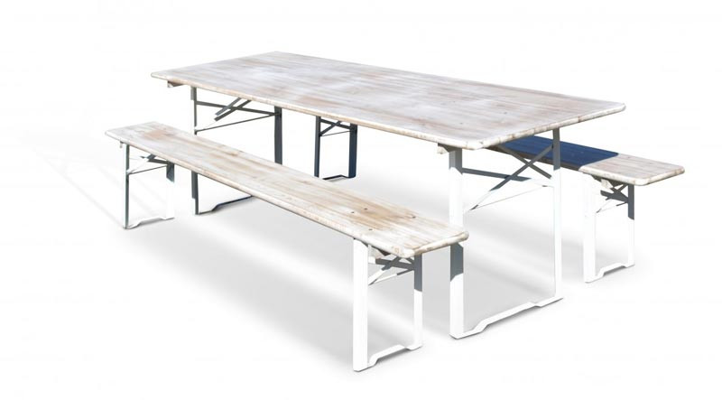 L'ensemble brasserie table et banc en bois empilable pour boire et manger en groupe dans la convivialité.