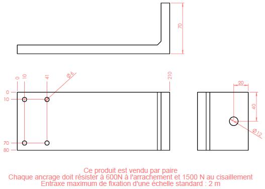 Ces pattes sont pré percées pour la fixation sur nos échelles et sont