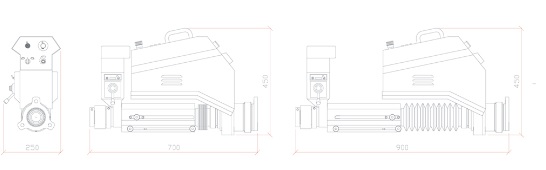 - Construit en deux modules pour effectuer des travaux indépendant.Par exemple, pour effectuer un rechargement de soudure, il n'est pas nécessaire d'utiliser toute la machine mais uniquement le module d'avancement, DUAL SYSTEM Feed Drive.