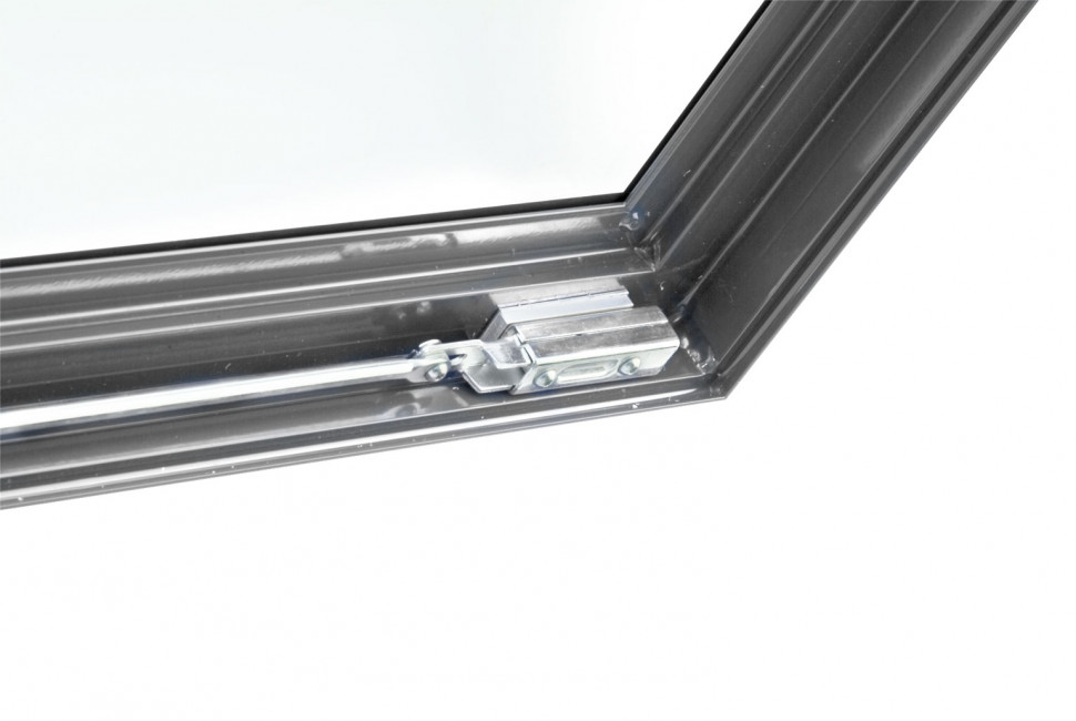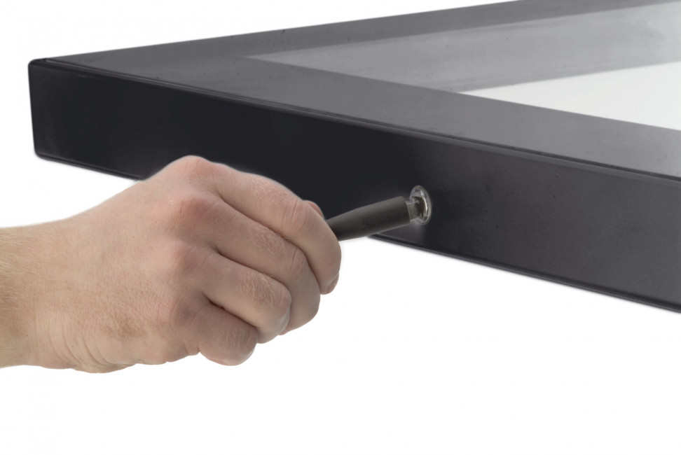 L'écran est sécurisé par un vantail en verre qui s'ouvre à l’aide de ressorts à gaz.