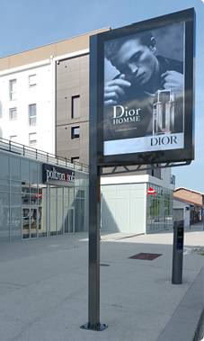 Le panneau publicitaire 2m² sur pied ou totem est conçu pour afficher les publicités de manière visible et attractive dans des espaces publics comme les centres commerciaux, gares ou arrêts de bus.