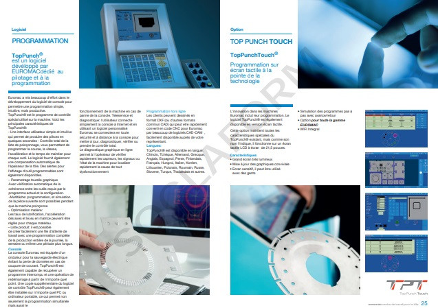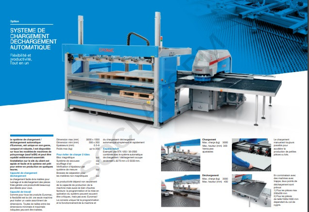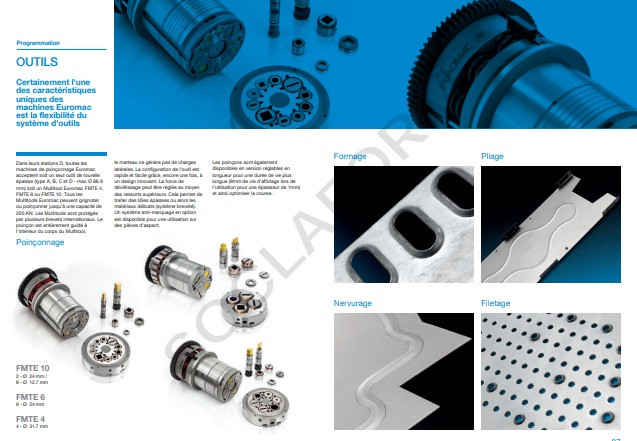 La machine permet de poinçonner, former, plier, fileter et soyer des tôles avec un changement d'outils rapide et un chargement facile.
