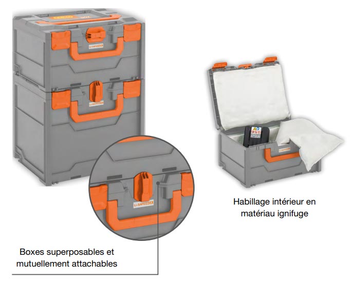 Cette box est conçue pour le stockage et le transport sécurisé des batteries lithium.
