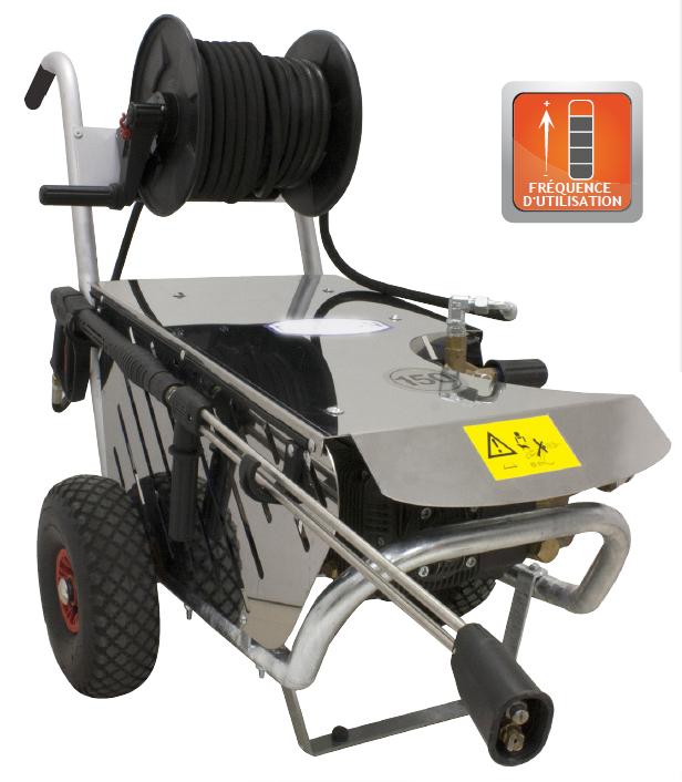 Ce nettoyeur haute pression triphasé eau froide complet et polyvalent pour un usage intensif équipé d'un moteur à rotation lente avec accouplement élastique.