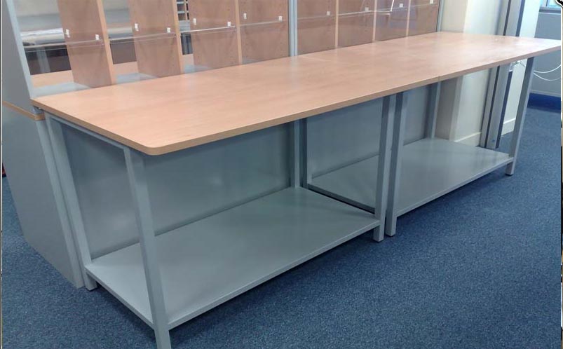 Table de travail à plateau mélaminé avec tablettes - Ep. 25 mm