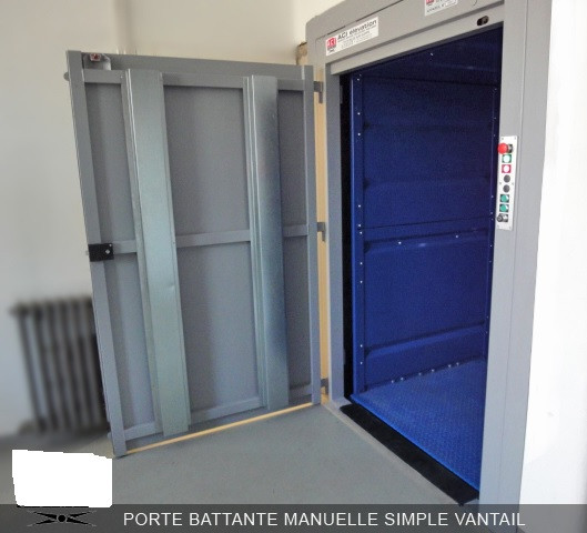 Cette porte battante manuelle simple ou double vantaux est l'accessoire idéal pour vos monte-charges.