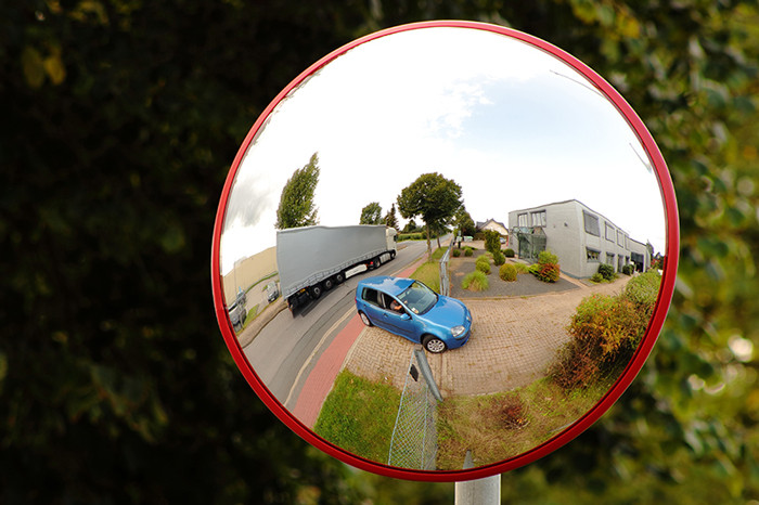 Ce miroir de sécurité routier en polycarbonate presqu’incassable (Ø 6 mm) est idéal pour améliorer la sécurité sur les routes.