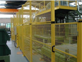 Nous vous proposons une cloison grillagée industriellecomposée de poteaux 60x60 à base soudée et de panneaux avec cadre 20x20 et 30x30 assemblés entre eux à l'aide de clips à enclenchement rapide breveté.