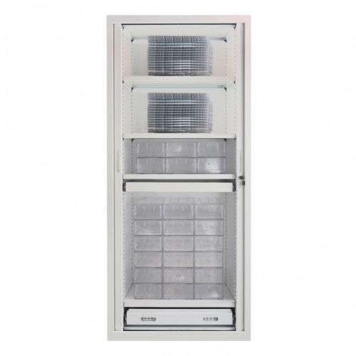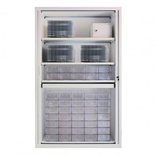 Les aménagements internes modulables, l’étagère supérieure pour dossiers suspendus et le fond plat obtenable par étagère amovible facilitent la gestion quotidienne des dotations mensuelles et de la PDA (Préparation des Doses à Administrer).