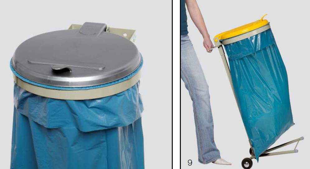 Ce support sac poubelle tri sélectif est conçu pour l'utilisation des sacs poubelles plastiques de 120 L.