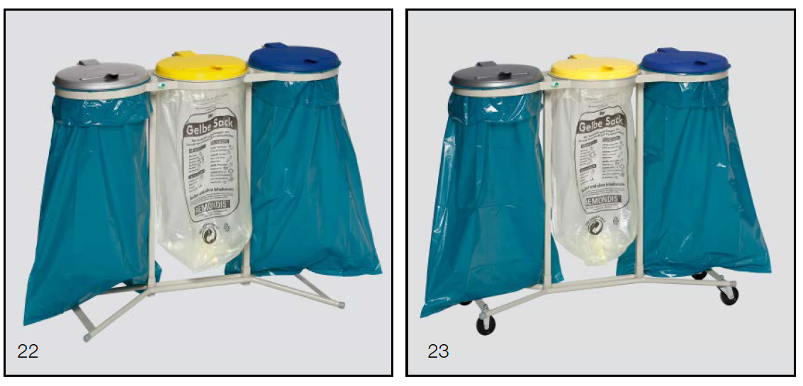 (Ouverture = env. Ø 350 mm) et d‘un couvercle plastique jaune, bleu ou argent pour un tri simple.