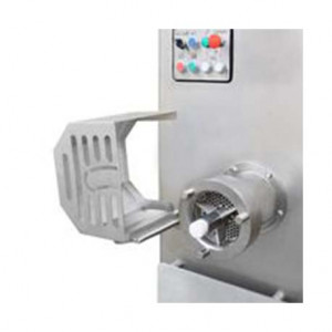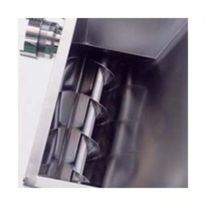 - Vis de coupe tournant plus rapidement que la vis d’amener pour une qualité de coupe supérieure des viandes ‘dures’, couenne, etc.