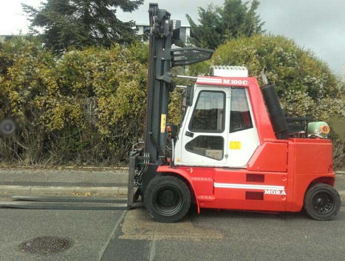 Ce chariot élévateur frontal à 4 roues convient pour manipuler sans efforts des charges jusqu'à 10 T.