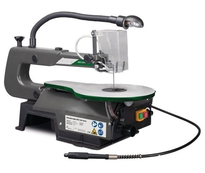 Cette scie à chantourner sur table est livrée avec deux lames (15 et 18 dents) et une meuleuse universelle à vitesse réglable (1650 à 4800 tr/min), utilisable pour :