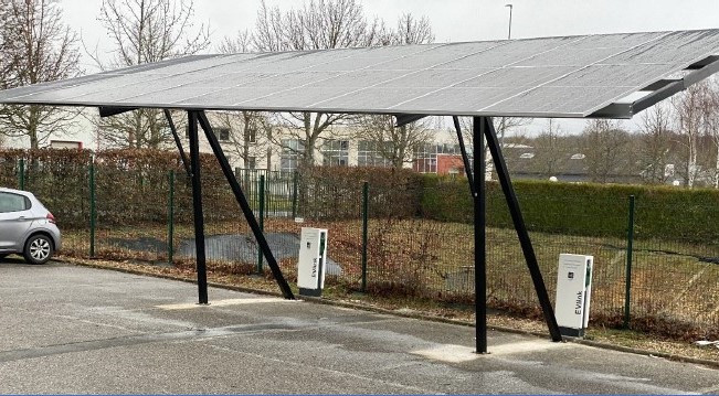 En option, les ombrières peuvent être équipées d'un éclairage LED nocturne à commande photoélectrique, de bornes de recharge pour véhicules électriques et d'un portique de limitation de hauteur d'accès. Personnalisez votre installation selon vos besoins spécifiques et vos préférences.