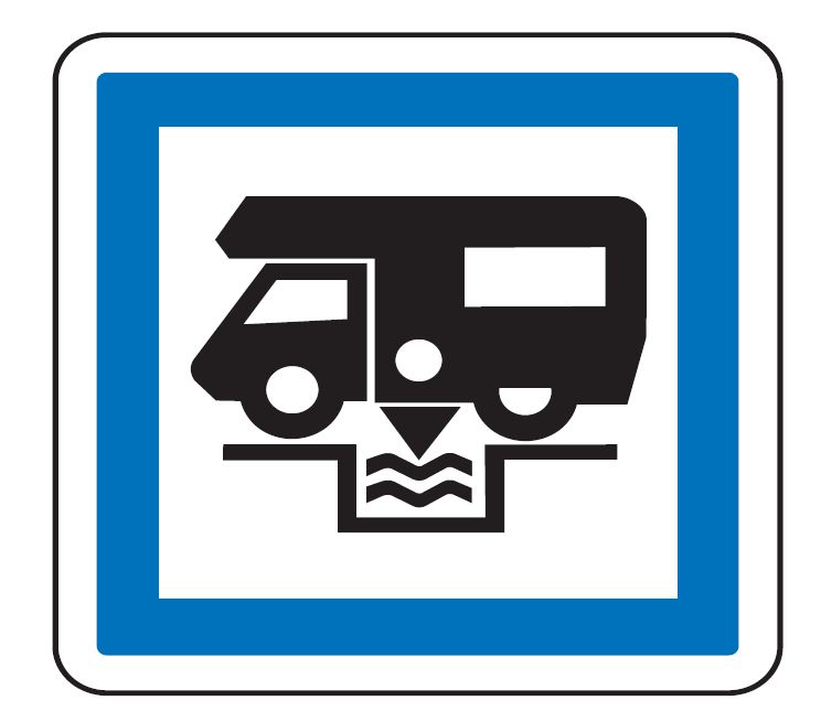 Ce panneau de type CE24 de fabrication française est conçu pour indiquer un emplacement comportant un aménagement spécifique pour la vidange des eaux usées et des eaux-vannes, et un point d'alimentation en eau potable, destinés aux caravanes, autocaravanes et cars.
